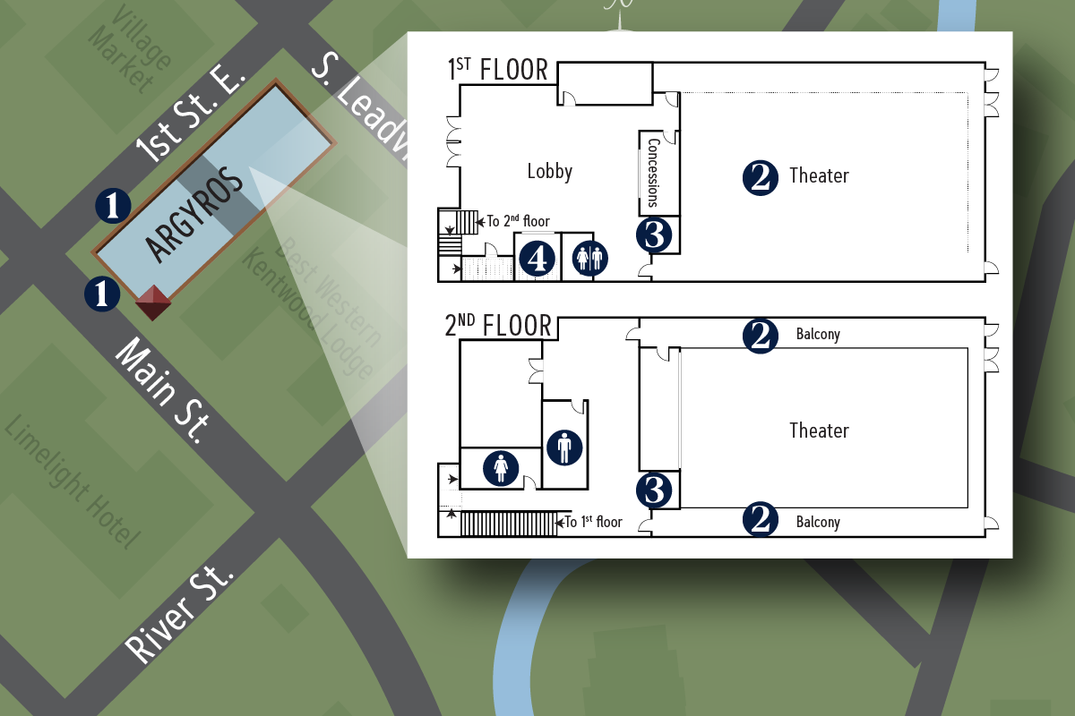 The Argyros does not have any dedicated ADA parking. However, there are “pull-ins” on both Main Street and 1st Street East along the side of the Argyros where a driver can pull over and let a passenger out. Festival staff will be available to help anyone needing assistance exiting a vehicle and entering the building.