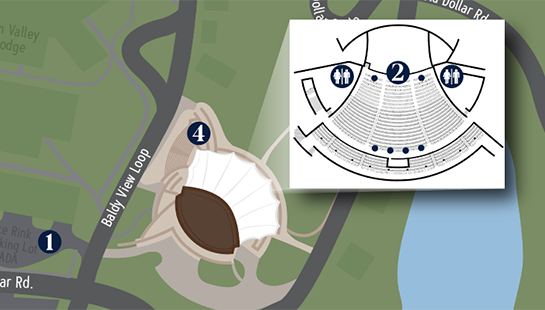 Accordion Body: Located at the Ice Rink Parking lot and in the first few rows of the Pavilion lot.  Golf cart shuttles run between the two lots and the Main Entrance from 45 minutes before the concert and for 45 minutes after the concert.  Parking spaces are limited; please consider dropping off at the Main Entrance if your group includes a driver able to park and walk from the Pavilion Lot.