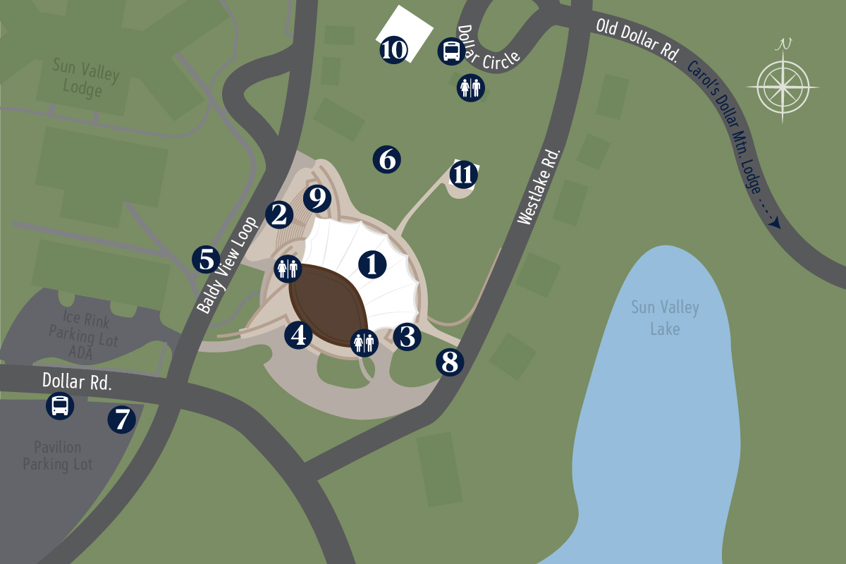 The Sun Valley Pavilion opens at 5:30 PM, one hour before each performance. Patrons may line up for seats before that on the East Terrace (see #4 below). If you are running late, please check with an usher to be seated during a break in the performance.