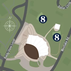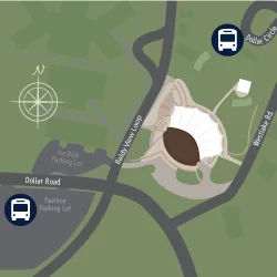 Free parking is located at the Pavilion lot across Dollar Road.